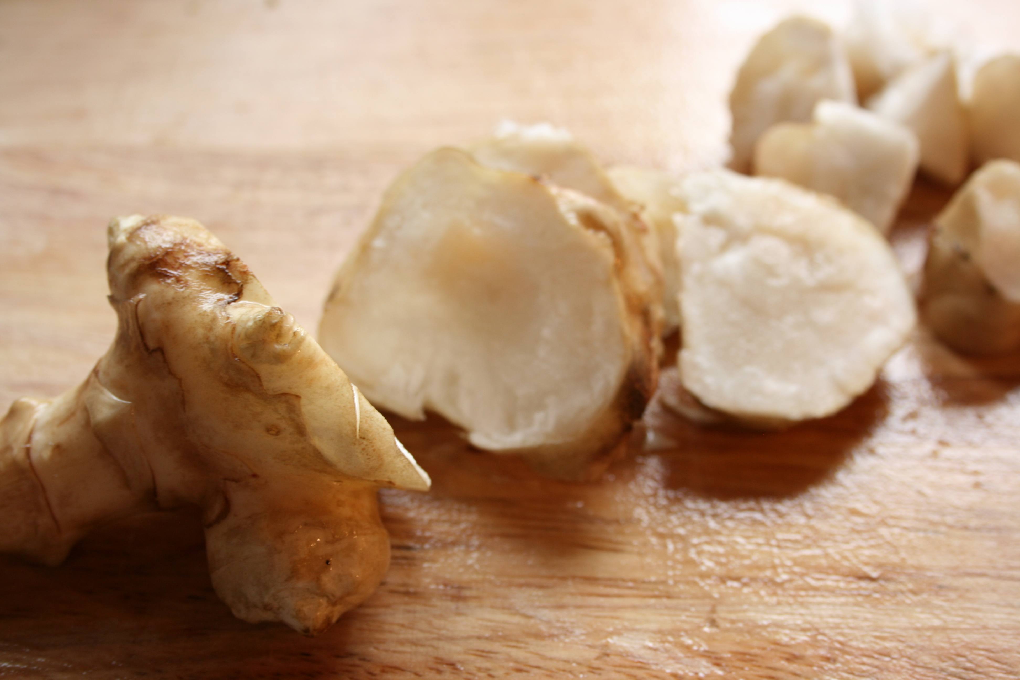 Auch als Jerusalemartischocke oder Indianerkartoffel bezeichnet, kommt die ingwerähnliche Knolle ursprünglich aus Nord- und Mittelamerika. Die Pflanze wird bis zu drei Meter hoch und bekommt im Spätsommer kleine sonnengelbe Blüten. Bei Bedarf wird die Knolle einfach ausgegraben. Früher ein weit verbreitetes Grundnahrungsmittel, wurde Topinambur zwischenzeitlich fast vergessen. Mittlerweile taucht sie aber wieder häufiger auf Bauernmärkten, Bioläden und in der heimischen Gastronomieszene auf.